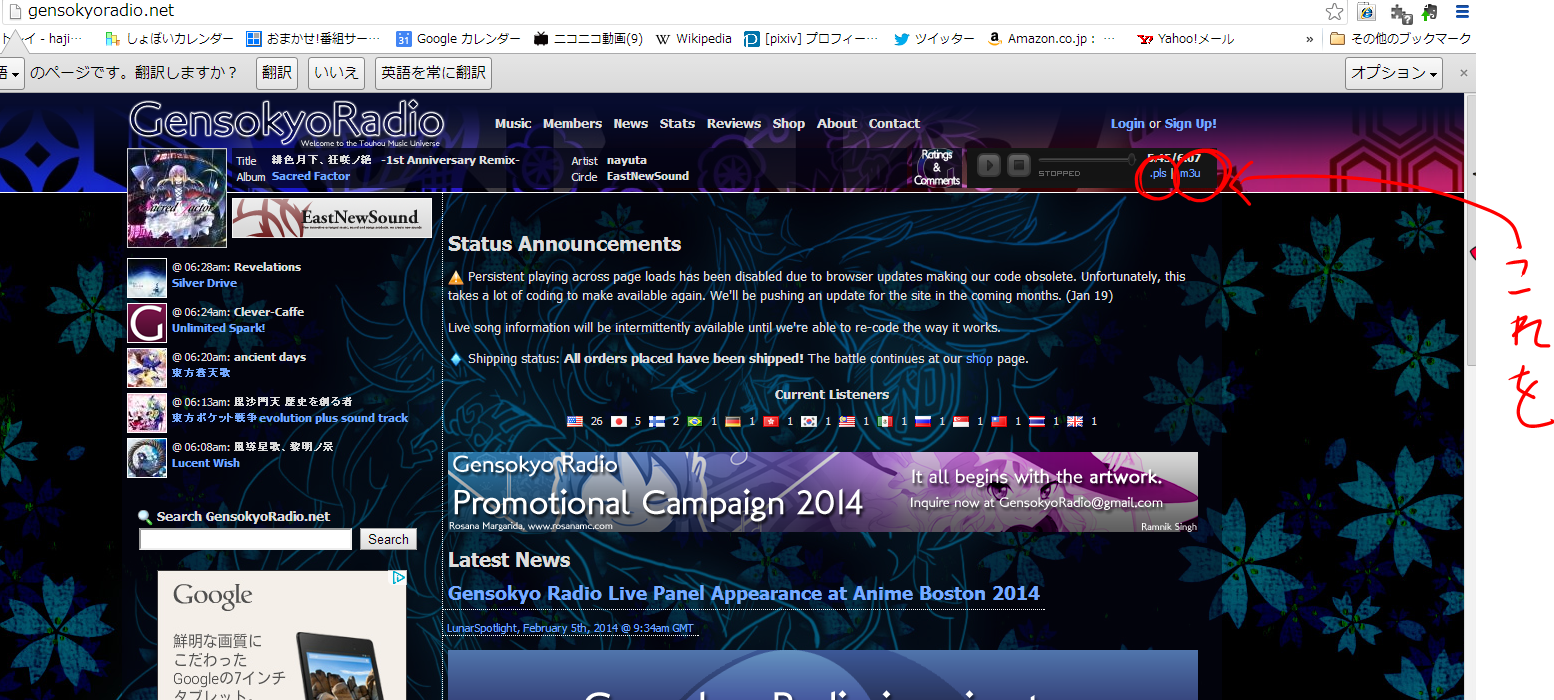 Gensokyo Radio」さんをきいていましたね。