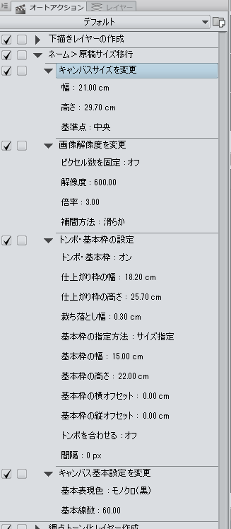 ネームから原稿サイズ(解像度)に変えるオートアクションを組んでおきましょう